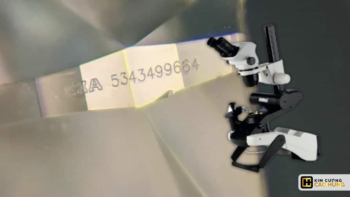 Hầu hết các viên kim cương được kiểm định bởi các trung tâm uy tín như GIA, IGI, HRD… đều được khắc một mã số siêu nhỏ trên viền đá, gọi là mã khắc laser. Mã số này giúp định danh duy nhất mỗi viên kim cương. Kiểm tra mã số cạnh kim cương là bước quan trọng để đảm bảo viên đá bạn đang sở hữu hay chuẩn bị mua đúng với thông tin trên giấy chứng nhận.